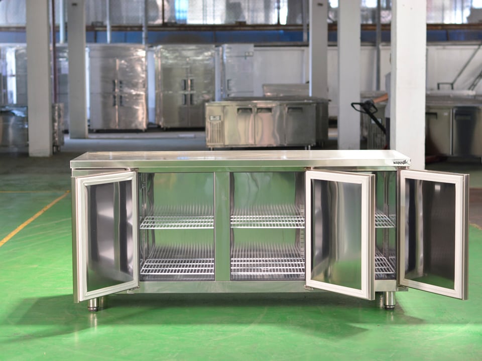 Bên dưới mặt bàn là khoang bảo quản dung tích lớn 460 lít, vận hành ổn định ở mức nhiệt độ từ 0 °C – 10 °C, phù hợp để lưu trữ nhiều loại thực phẩm khác nhau như rau củ, thịt cá, nguyên liệu chế biến sẵn, đồ uống…