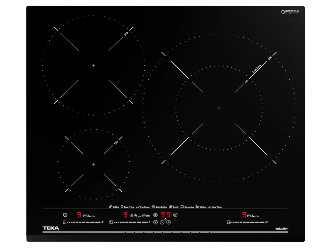 Bếp có 3 vùng nấu linh hoạt, phù hợp với nhiều loại nồi, chảo và nhu cầu nấu nướng khác nhau: