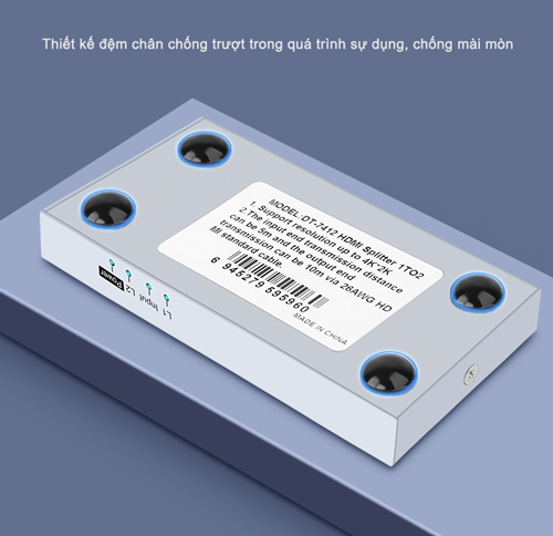 Chia 1 Đầu Vào Ra 2 Đầu Ra: Tính năng cốt lõi của DT-7142A là khả năng tiếp nhận tín hiệu từ 1 đầu vào HDMI duy nhất (từ Laptop, PC, đầu phát media, Console game, v.v.) và chia ra 2 đầu ra HDMI đồng thời. Điều này cho phép bạn xuất cùng một hình ảnh hoặc video ra hai màn hình hiển thị (TV, Monitor, Máy chiếu) mà không làm suy giảm chất lượng tín hiệu gốc.