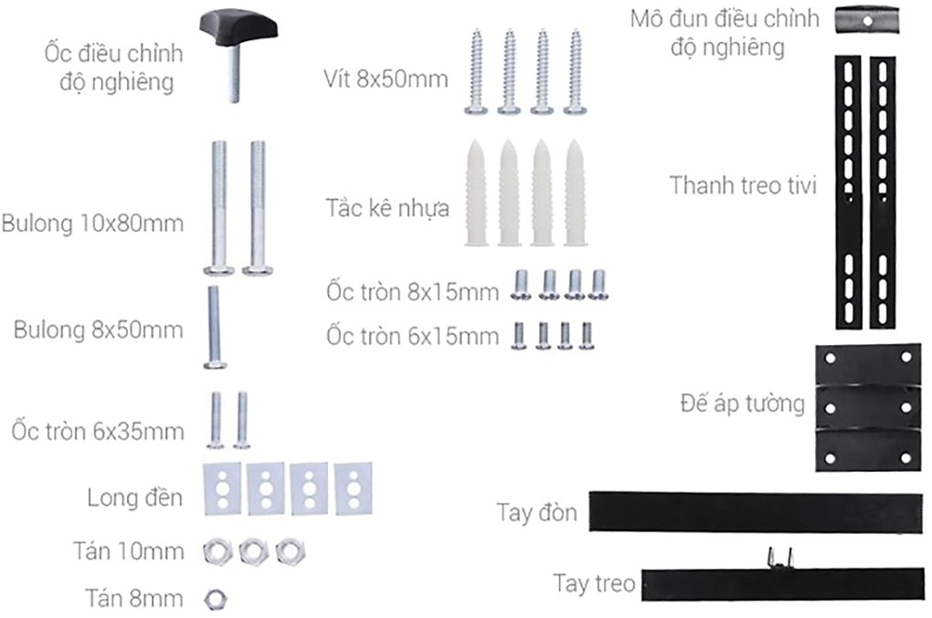 Độ Bền Đáng Tin Cậy: Mặc dù không có thông số tải trọng cụ thể trong bảng, nhưng với việc được sản xuất bởi Cảnh Phong (thương hiệu Việt Nam uy tín), khung treo này được làm từ vật liệu chất lượng cao, thường là thép sơn tĩnh điện, đảm bảo độ chắc chắn cần thiết cho tivi có kích thước 37 inch.