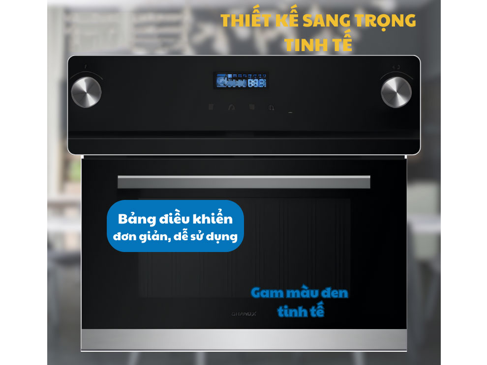 Thao Tác Dễ Dàng: Lò nướng thiết kế bảng điều khiển cảm ứng kỹ thuật số kết hợp với núm vặn giúp người dùng thao tác nhanh chóng và chính xác. Màn hình cảm ứng nhạy bén hiển thị rõ ràng và các biểu tượng trực quan, thuận tiện sử dụng cho cả người cao tuổi.