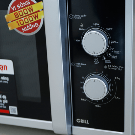 Bảng điều khiển được chia thành 5 mức công suất vi sóng, 4 chế độ nướng và 15 hạn mức thời gian đi kèm 4 khoảng trọng lượng, giúp bạn linh hoạt điều chỉnh phù hợp với từng loại thực phẩm. Sự tiện lợi, dễ sử dụng chính là lý do khiến sản phẩm này trở thành lựa chọn hàng đầu của nhiều gia đình Việt.