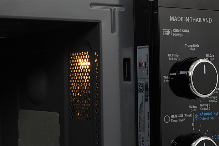Sản phẩm còn được trang bị thêm chức năng nướng với công suất lên tới 1000W, đáp ứng tốt nhu cầu nướng các món như thịt xiên, gà quay, cá nướng hay pizza giòn rụm. Nhờ sự kết hợp giữa hai nguồn nhiệt, bạn hoàn toàn có thể nấu được những món ăn vừa chín đều bên trong vừa vàng giòn bên ngoài một cách dễ dàng.