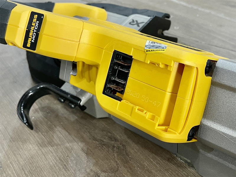 Mặc dù có trọng lượng 5.6kg, kết cấu máy chắc chắn giúp đảm bảo độ ổn định khi cắt. Việc sử dụng pin (thân máy) mang lại tính cơ động tuyệt vời: