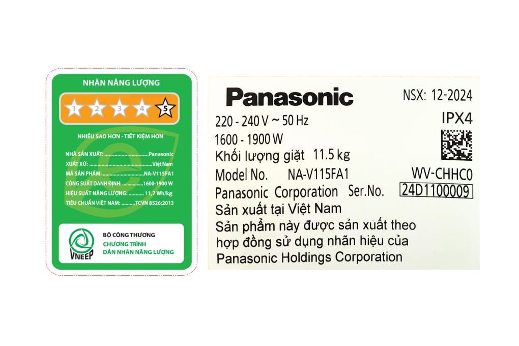 Máy giặt Panasonic NA-V115FA1LV sở hữu nhiều công nghệ đột phá, tối ưu hóa mọi khía cạnh của quy trình giặt giũ.