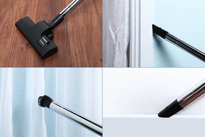 Vệ sinh toàn diện trên mọi bề mặt: Máy được trang bị nhiều đầu hút đi kèm, giúp bạn dễ dàng làm sạch mọi khu vực trong nhà. Đầu hút sàn/thảm chuyên dụng giúp xử lý hiệu quả bụi trên nhiều loại bề mặt.
