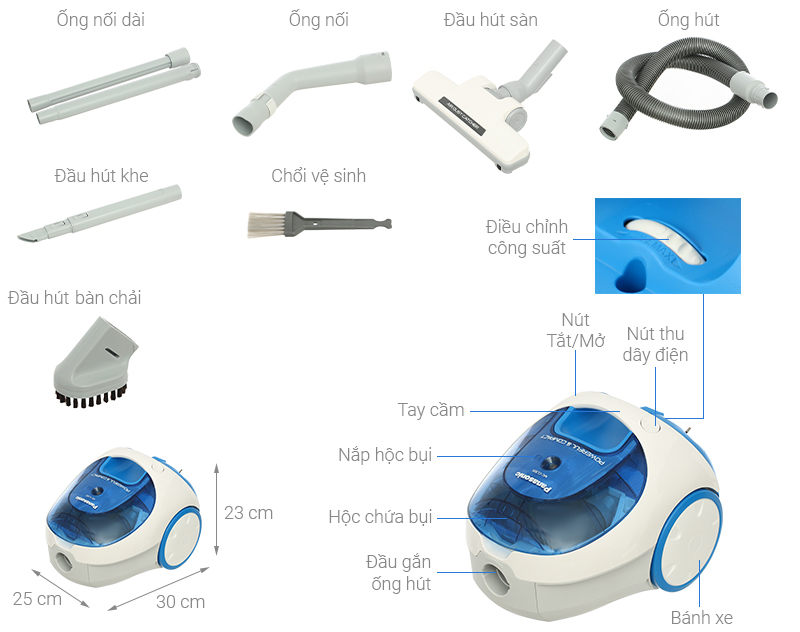 Với công suất mạnh mẽ, bộ lọc HEPA bảo vệ sức khỏe, chức năng thổi bụi độc đáo và thiết kế tiện lợi, máy hút bụi Panasonic MC-CL305BN46 là một lựa chọn lý tưởng cho các gia đình hiện đại, giúp công việc dọn dẹp trở nên nhanh chóng và hiệu quả.