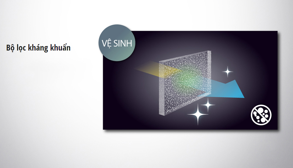 Bộ lọc kháng khuẩn bảo vệ sức khỏe: Máy được trang bị bộ lọc kháng khuẩn với lớp đồng bên trong, có khả năng loại bỏ các hạt gây mùi một cách hiệu quả. Nhờ vậy, máy không chỉ làm sạch bụi bẩn mà còn cải thiện chất lượng không khí, mang lại không gian trong lành và an toàn cho sức khỏe của cả gia đình.