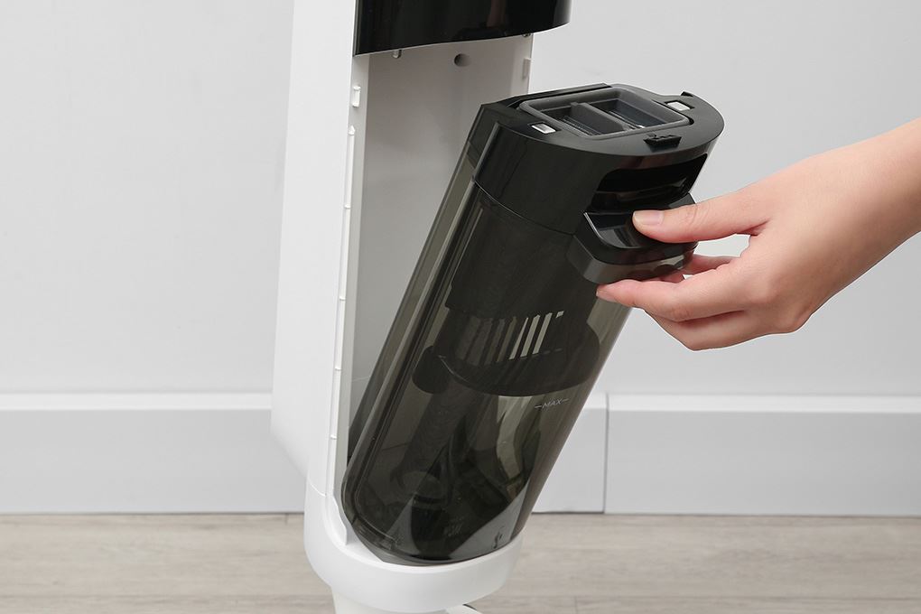 Hộp Chứa Thông Minh: Hệ thống khoang chứa tiện lợi với dung tích 0.5 lít cho bụi và nước dơ, cùng dung tích 0.6 lít cho nước sạch, giúp tiết kiệm thời gian thay nước khi làm sạch.