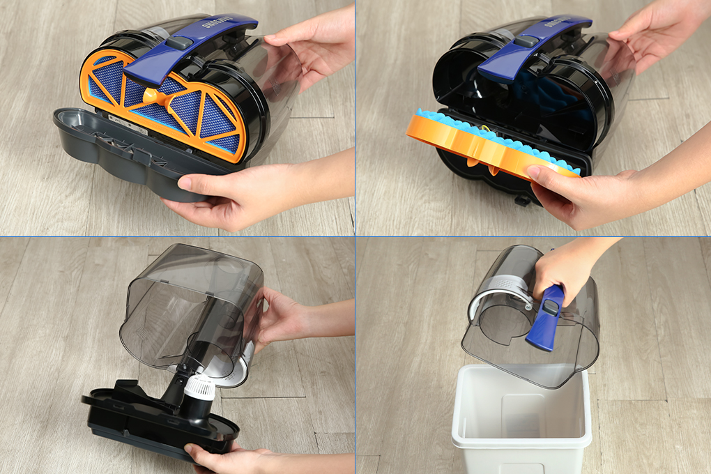 Tối ưu hóa lực hút: Thiết kế hộp chứa bụi ngăn đôi giúp hạn chế tối đa việc tràn bụi và tránh chặn đường hút của không khí ở ngăn trong.