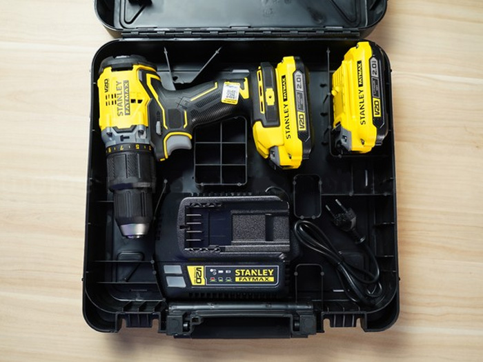 Nguồn Pin Mạnh Mẽ: Máy khoan Stanley dùng pin hai mươi V Lithium-ion, dung lượng hai Ah, cung cấp nguồn năng lượng dồi dào và ổn định cho các tác vụ nặng.