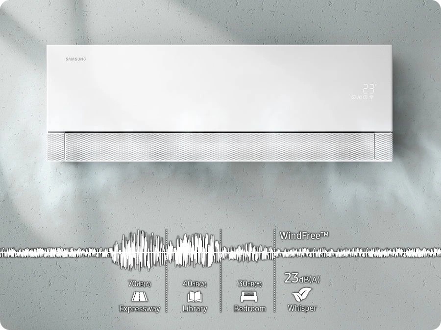 Nỗi lo về cảm giác lạnh buốt khi ngồi trực tiếp dưới hướng gió điều hòa sẽ hoàn toàn tan biến với mẫu AR70H18D1BWNSV. Công nghệ WindFree độc quyền của Samsung sử dụng hơn 23.000 vi lỗ siêu nhỏ trên bề mặt dàn lạnh để phân tán luồng không khí. Thay vì thổi gió mạnh, máy tạo ra một môi trường tĩnh khí (Still Air), nơi hơi lạnh nhẹ nhàng lan tỏa và thẩm thấu vào không gian.