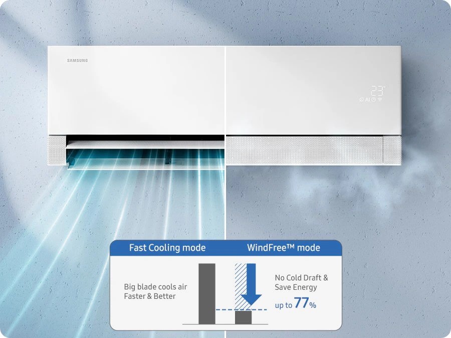 Chế độ WindFree trên AR70H18D1BWNSV đặc biệt hữu ích cho những gia đình có trẻ nhỏ, người cao tuổi hoặc những người có làn da nhạy cảm. Bạn có thể duy trì mức nhiệt độ lý tưởng suốt cả ngày đêm mà vẫn cảm thấy dễ chịu, không bị khô da hay đau họng, giúp nâng cao chất lượng giấc ngủ và sự thư giãn sau những giờ làm việc căng thẳng.