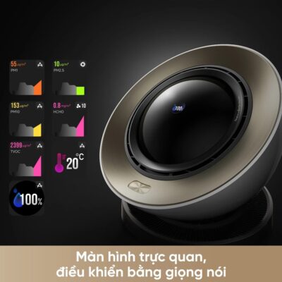 Màn Hình LCD Trực Quan: Hiển thị chi tiết chất lượng không khí theo thời gian thực (nồng độ ô nhiễm), giúp bạn dễ dàng theo dõi và lựa chọn chế độ lọc phù hợp.