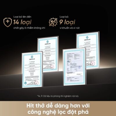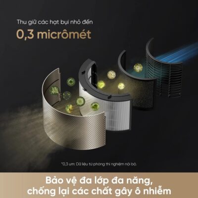 Màng lọc Composite: Giữ lại bụi siêu mịn PM2.5, vi khuẩn, virus nhỏ đến 0.3 micron, giảm nguy cơ dị ứng và bệnh hô hấp.
