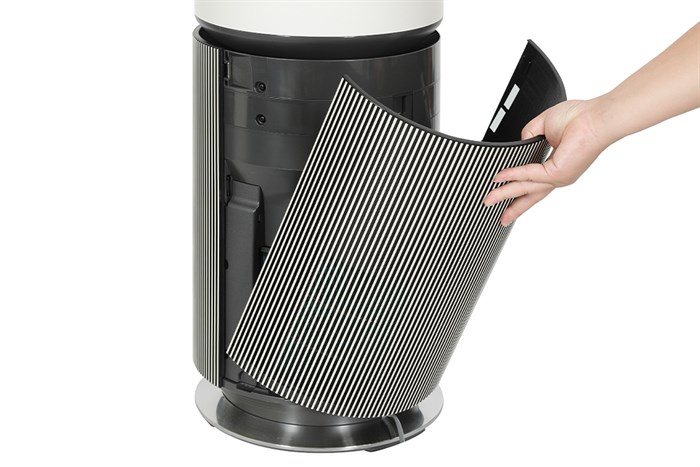 Máy lọc không khí LG PuriCare 360 Alpha Single AS65GDBY0.ABAE 48W sở hữu vẻ ngoài hiện đại với thiết kế hình trụ tinh tế, cùng tông màu trang nhã, dễ dàng hòa hợp và tôn lên vẻ đẹp của nhiều phong cách nội thất khác nhau. Với kích thước gọn gàng, máy thuận tiện cho việc bố trí ở bất cứ đâu trong nhà, từ phòng khách, phòng ngủ cho đến phòng làm việc. Điểm ưu việt trong thiết kế là cơ chế lọc không khí 360˚ toàn diện, cho phép máy hút và thổi luồng khí sạch đi khắp mọi ngóc ngách, đảm bảo không khí xung quanh được làm sạch từ mọi hướng. Nhờ công suất 48W mạnh mẽ, thiết bị này hoạt động hiệu quả trong phạm vi diện tích lớn lên đến 61.2m², đáp ứng tốt nhu cầu làm sạch không khí cho các không gian sinh hoạt chung rộng rãi.