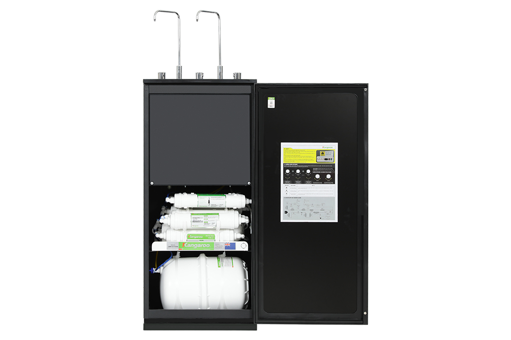 Kangaroo KG10A13 sở hữu kiểu dáng tủ đứng với màu sắc sang trọng, kích thước gọn gàng (43cm×34cm×94cm), dễ dàng bố trí ở nhiều không gian. Máy được trang bị 2 vòi lấy nước với 3 chế độ (nóng - nguội - lạnh), lấy nước bằng nút vặn (van cơ) vô cùng đơn giản. Thiết kế này còn tích hợp khóa vòi nóng an toàn, đặc biệt quan trọng với gia đình có trẻ nhỏ.