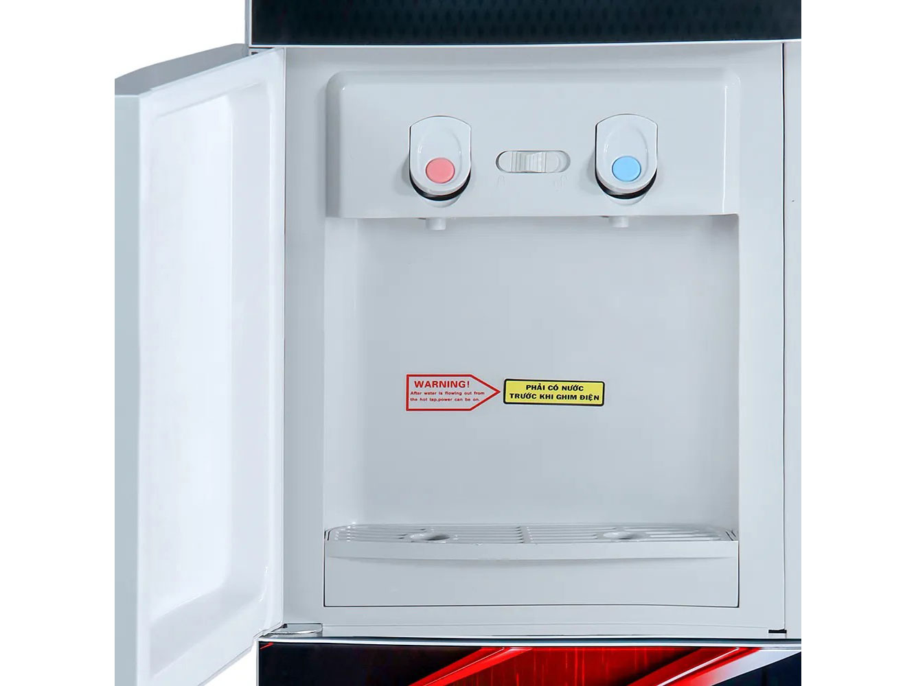 Không chỉ là một cây nước nóng lạnh đơn thuần, phía dưới thân máy Alaska R80 được thiết kế thêm một ngăn chứa đồ rộng rãi. Đây là không gian lý tưởng để bạn lưu trữ các vật dụng nhỏ phục vụ cho việc uống nước như: ly, tách, trà, cà phê đóng gói hoặc các vật dụng cá nhân khác. Việc tích hợp ngăn chứa giúp không gian xung quanh máy luôn được sắp xếp ngăn nắp, gọn gàng và tiện lợi khi cần sử dụng ngay.