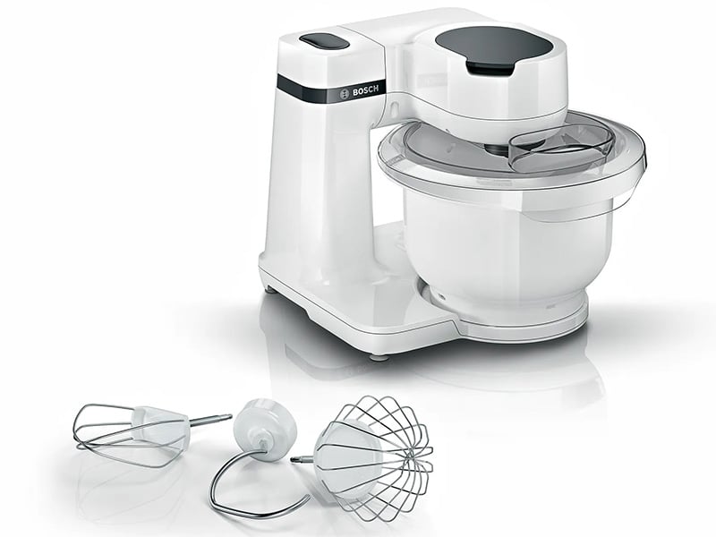 Máy trộn bột Bosch MUMS2AW00 đi kèm với bộ phụ kiện đầy đủ, giúp người dùng mở rộng khả năng chế biến:
