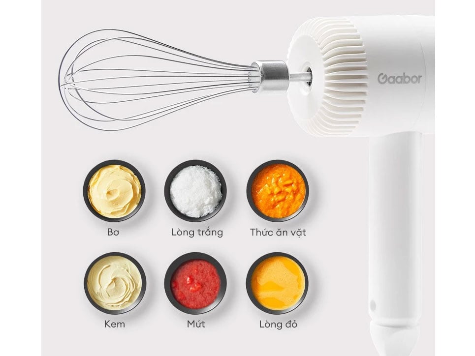 Hỗ Trợ Làm Bánh: Sử dụng đầu đánh trứng đi kèm để đánh kem tươi, đánh bông lòng trắng trứng, hoặc trộn bột lỏng làm bánh, giúp công việc làm bánh tại nhà trở nên đơn giản và tiết kiệm sức lực hơn.