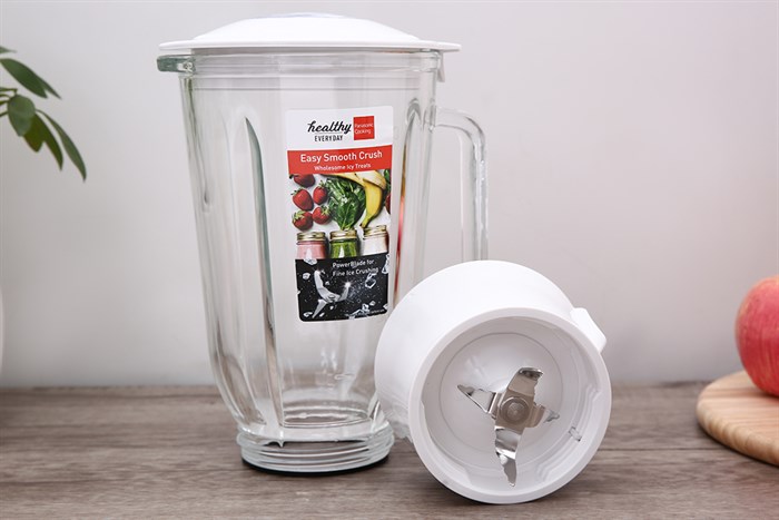 Cối xay sinh tố dung tích 1.5 lít: Cối lớn này được làm từ nhựa bền bỉ, có khả năng xay sinh tố cho cả gia đình. Bạn có thể dễ dàng xay nhuyễn các loại trái cây, rau củ và thậm chí là 250g đá viên, tương đương khoảng 8-10 viên đá, để làm những ly đồ uống giải khát mát lạnh.