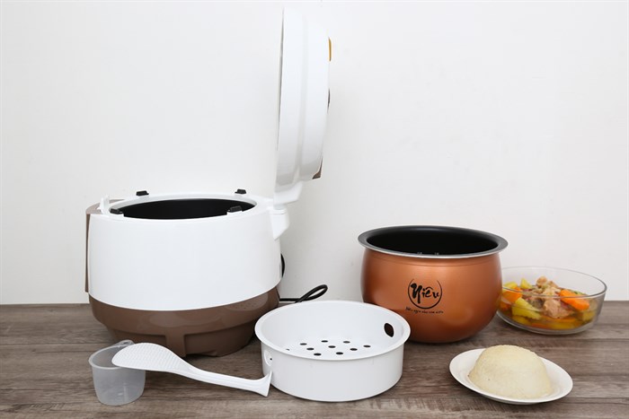 Xửng Hấp Đi Kèm: Nồi được trang bị xửng hấp tiện dụng, cho phép người dùng hấp cùng lúc nhiều loại thực phẩm trong quá trình nấu cơm, tiết kiệm thời gian và điện năng.