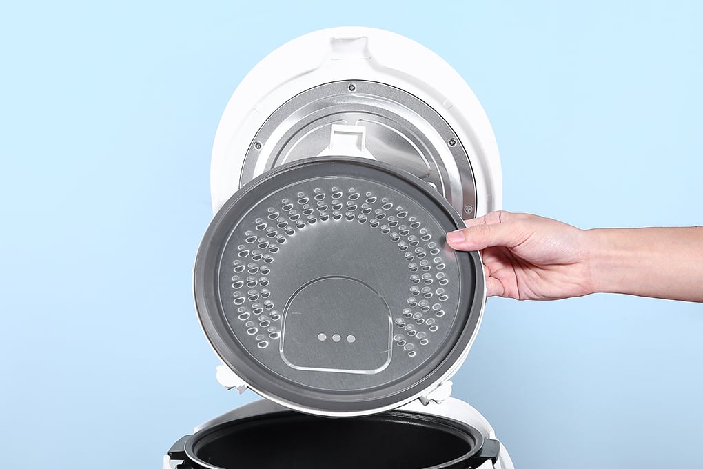 Nắp Trong Thiết Kế Tổ Ong: Nắp trong có thể tháo rời tiện lợi để vệ sinh và được thiết kế tổ ong độc đáo, giúp bề mặt cơm luôn khô ráo, không bị đọng nước, đảm bảo cơm chín rất ngon.