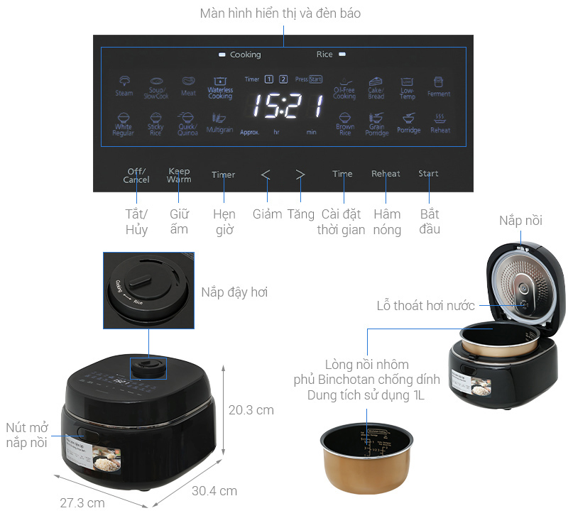 Đa năng, linh hoạt: Chiếc nồi này không chỉ dùng để nấu cơm, mà còn là trợ thủ đắc lực cho việc làm súp, cháo, hấp, hay làm bánh, giúp bạn dễ dàng đa dạng hóa thực đơn hàng ngày.