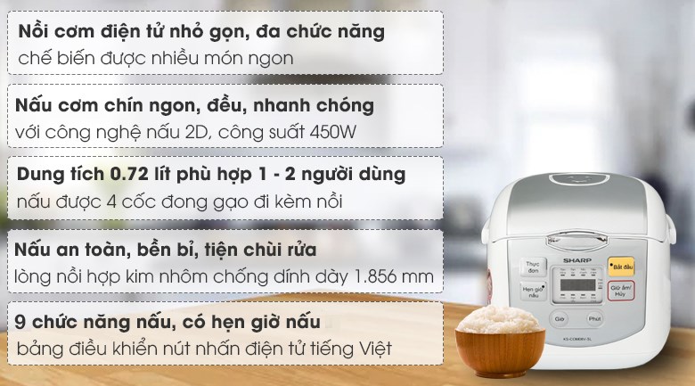 Bạn đang tìm kiếm một chiếc nồi cơm điện tử nhỏ gọn, đa năng để nấu những bữa cơm thơm ngon, tiết kiệm? Với dung tích 0.72 lít, chiếc nồi này chính là lựa chọn lý tưởng cho người sống một mình, sinh viên, hoặc các gia đình nhỏ. Tích hợp công nghệ nấu tiên tiến và thiết kế thông minh, sản phẩm không chỉ giúp bạn có cơm ngon mà còn mang lại sự tiện lợi tối đa.