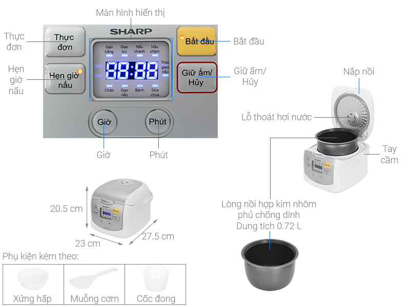 | Hẹn giờ nấu | Có, lên đến 12 giờ |