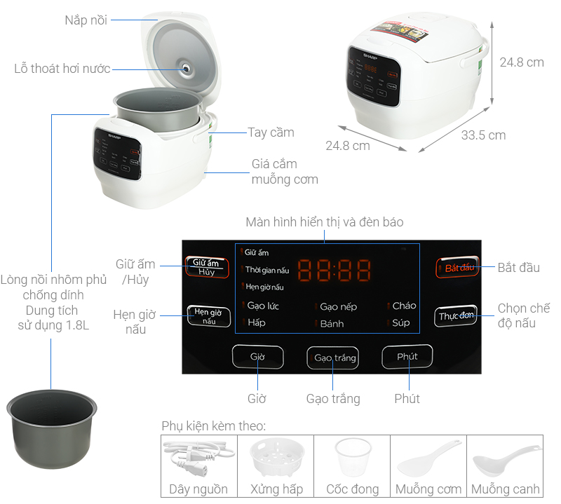 Trong nhịp sống hiện đại, một chiếc nồi cơm điện không chỉ đơn thuần là nấu cơm, mà còn phải là một trợ thủ đắc lực, đa năng để giúp bạn dễ dàng chuẩn bị những bữa ăn ngon và bổ dưỡng. Nồi cơm điện Sharp KS-COM183MV-WH 1.8 lít chính là lựa chọn lý tưởng. Thuộc dòng nồi cơm điện tử cao cấp, sản phẩm này không chỉ sở hữu thiết kế sang trọng mà còn tích hợp nhiều công nghệ tiên tiến và tính năng thông minh, mang đến những bữa cơm ấm cúng và trọn vẹn cho cả gia đình.