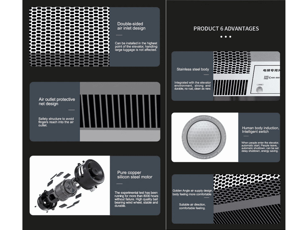 Sản phẩm hoạt động liên tục để hút và đẩy luồng khí trong cabin, giúp loại bỏ cảm giác ngột ngạt, nhất là khi thang máy hoạt động liên tục hoặc chở nhiều người. Nhờ luồng không khí lưu chuyển đều, người dùng cảm nhận được sự dễ chịu và thoải mái hơn khi sử dụng thang máy trong thời gian dài.