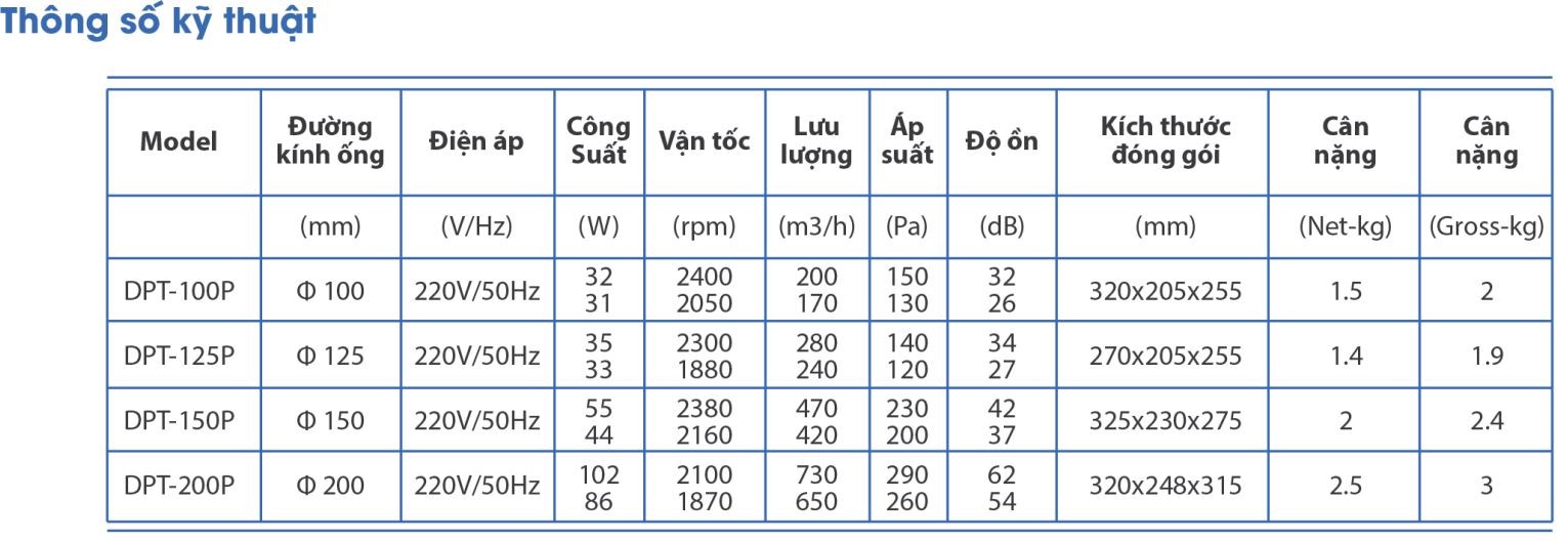 Thông số kỹ thuật DPT-100P