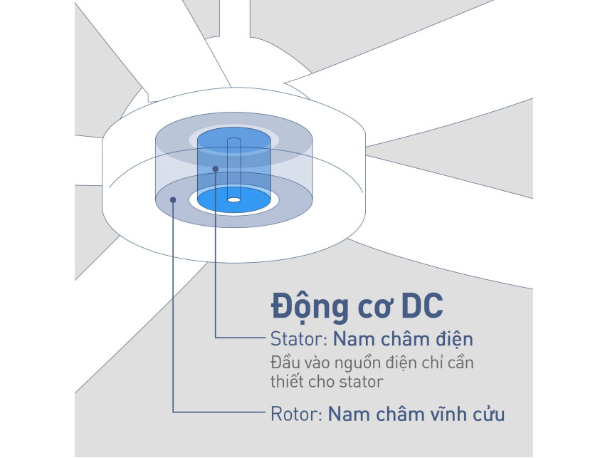 • Hoạt động Êm Ái: Động cơ DC nhẹ hơn và vận hành mượt mà hơn, đảm bảo quạt hoạt động cực kỳ êm ái, không gây tiếng ồn khó chịu, lý tưởng cho phòng ngủ.