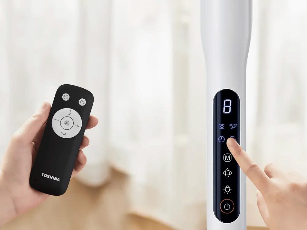 Điều khiển linh hoạt: Bạn có thể điều khiển quạt bằng bảng điều khiển cảm ứng trên thân quạt hoặc điều khiển từ xa tiện lợi.