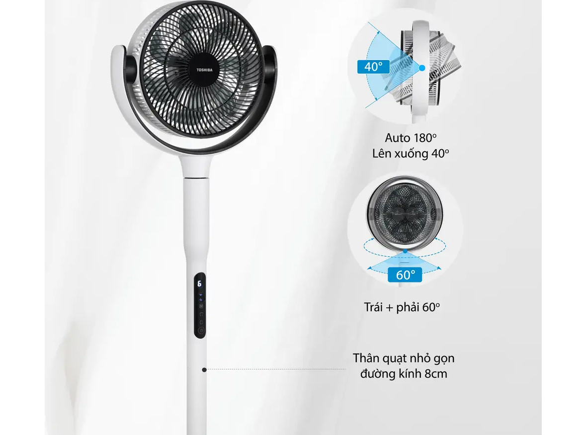 Góc đảo gió linh hoạt: Quạt có khả năng đảo gió ngang 60° và đảo gió dọc 180° (40° tự động), giúp phân tán luồng gió đều khắp không gian.
