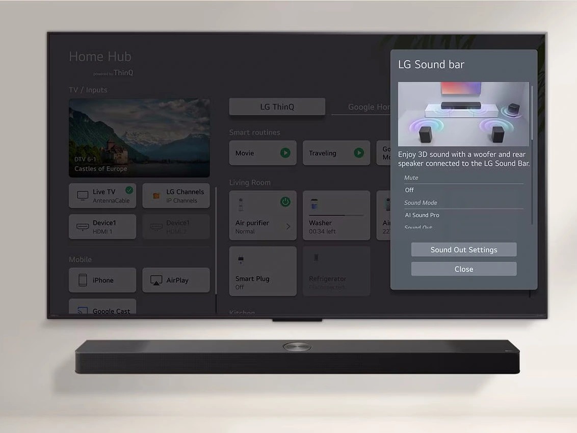 Tính năng Home Hub trên thiết bị 43UA8055PSA giúp bạn quản lý các thiết bị thông minh khác trong nhà như máy giặt, điều hòa hay robot hút bụi ngay trên màn hình tivi. Ngoài ra, với sự hỗ trợ của Google Cast, AirPlay và Multi View, bạn có thể dễ dàng chia sẻ nội dung từ điện thoại lên chiếc 43UA8055PSA hoặc xem hai chương trình cùng lúc trên một màn hình duy nhất, tối ưu hóa mọi nhu cầu giải trí và làm việc.