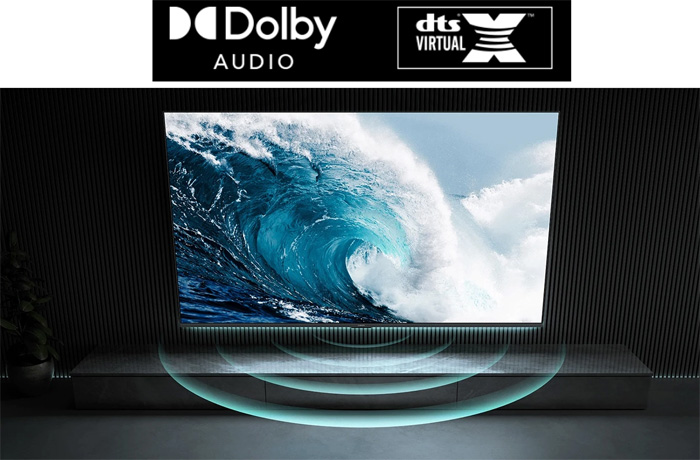 Tivi Xiaomi A Pro không chỉ mạnh về hình ảnh mà còn có hệ thống âm thanh chất lượng. Với công nghệ Dolby Audio và DTS:X, tivi mang đến trải nghiệm âm thanh vòm mạnh mẽ, giúp âm thanh lan tỏa đều khắp không gian. Điều này tạo chiều sâu và độ rõ nét cho từng tiếng động, cho bạn cảm giác như đang hòa mình vào từng phân cảnh.