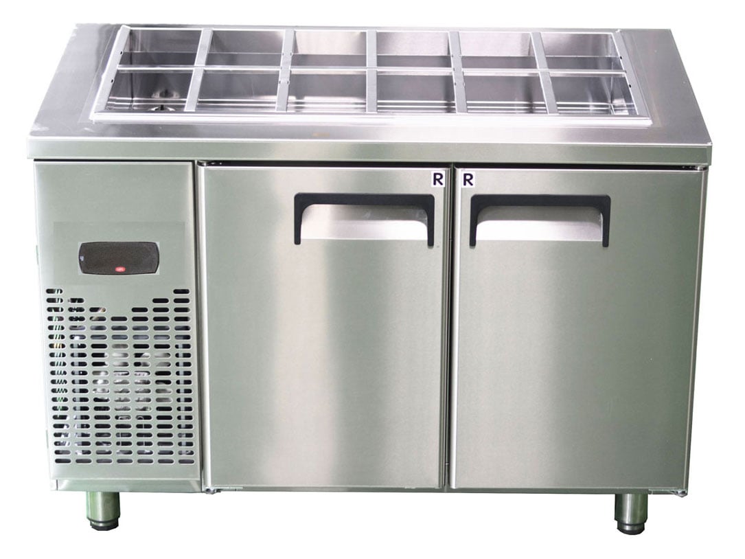 Mặt bàn tích hợp khay GN có nắp đậy hợp vệ sinh, lý tưởng để trưng bày salad và món khai vị.