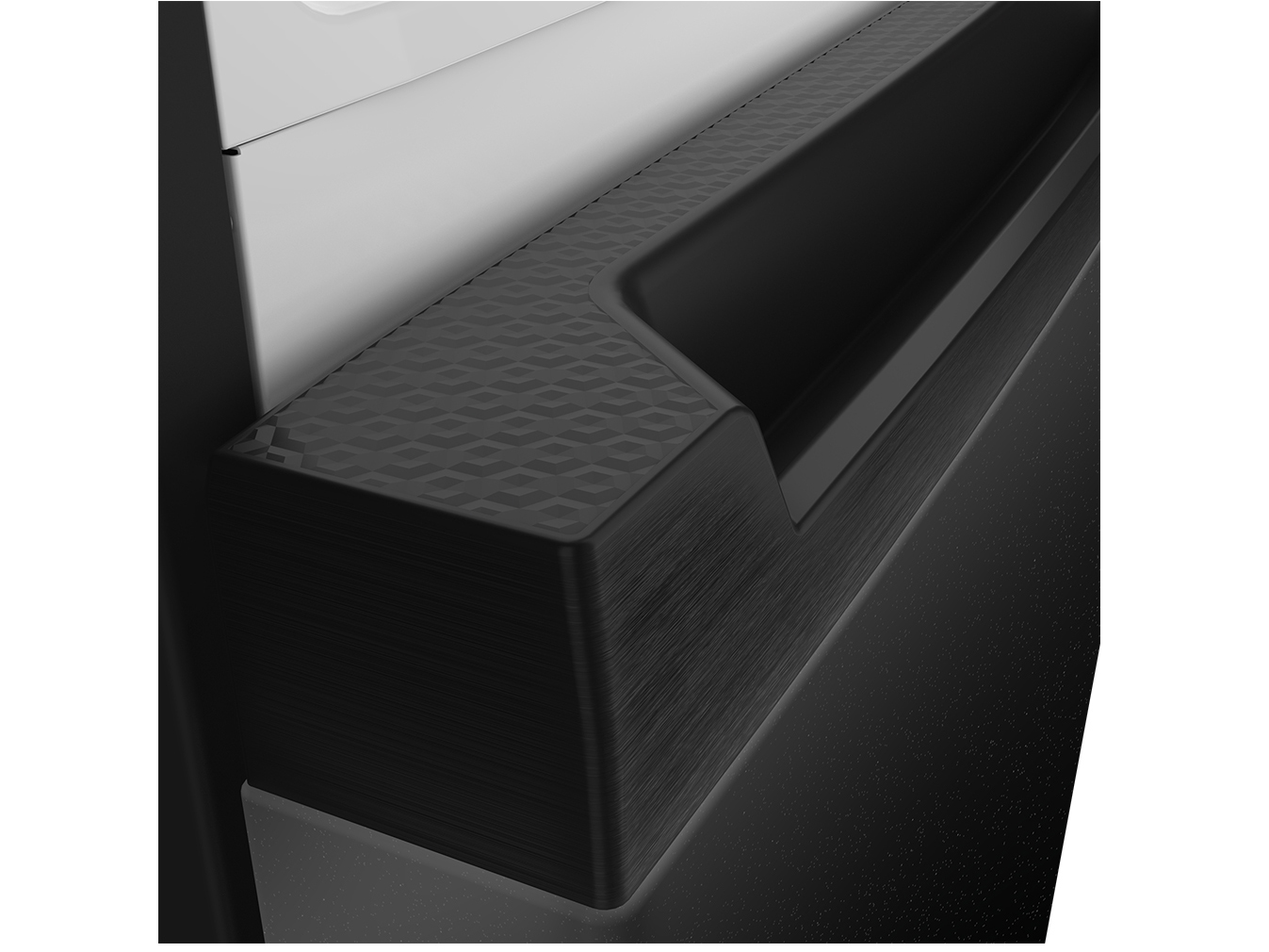 Tay nắm chìm tinh tế: Thay vì các tay nắm lồi gây vướng víu, Hitachi đã khéo léo thiết kế tay nắm dạng chìm. Điều này không chỉ tạo nên một tổng thể liền mạch, gọn gàng mà còn đặc biệt an toàn cho những gia đình có trẻ nhỏ thường xuyên chạy nhảy trong bếp.