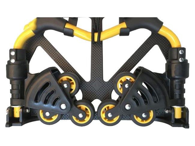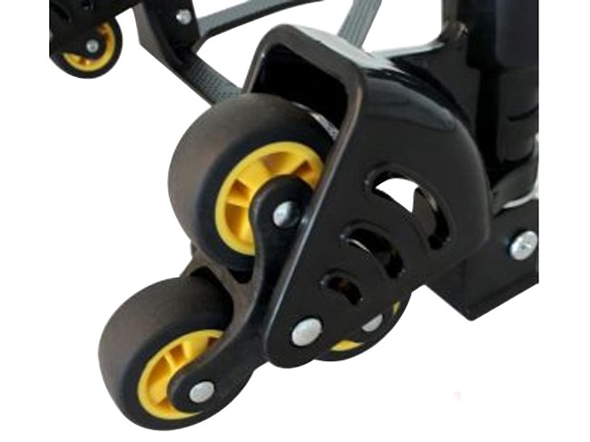Cơ chế leo bậc thông minh: 6 bánh xe được sắp xếp theo hình tam giác xoay vòng liên tục. Khi gặp bậc cầu thang, các bánh xe sẽ tự động luân phiên tì sát vào cạnh bậc, giúp việc kéo hàng lên cao trở nên nhẹ nhàng như đang di chuyển trên đường phẳng. Bạn không cần phải nhấc bổng cả khối hàng nặng, giúp giảm áp lực lên cột sống và cánh tay.